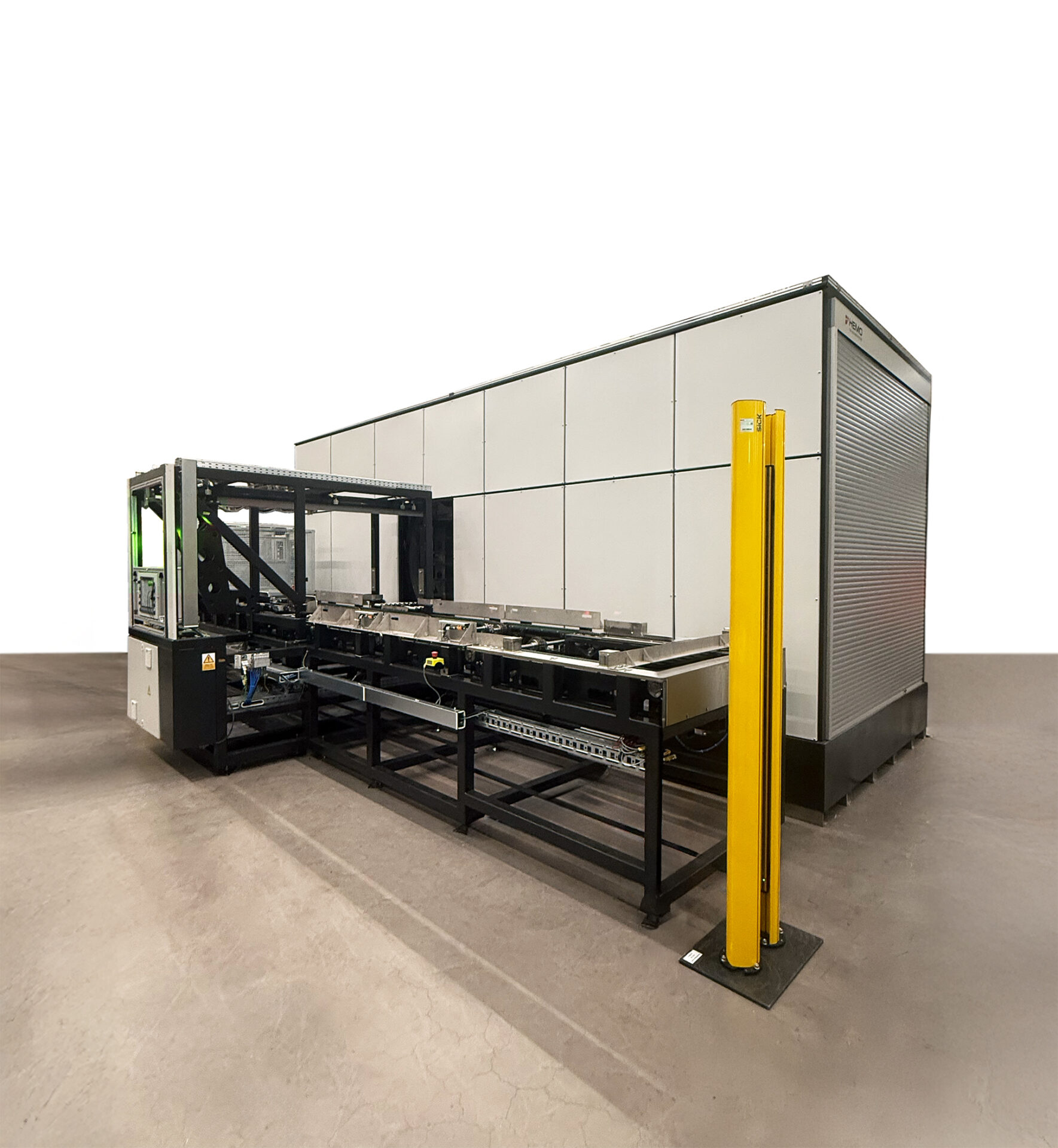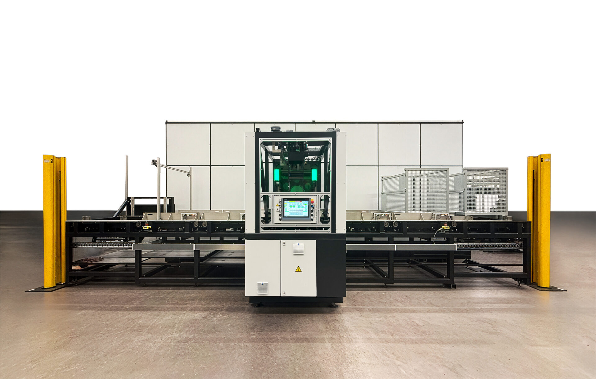 Die Be- und Entladung erfolgt per Stapler auf eine 5-Platz-Beschickung, was die Anlage weitgehend autark macht und eine reibungslose Integration in den Fertigungsfluss ermöglicht. Der Bereich ist mit Lichtschranken und Schutzzaun ausgestattet. So werden die Unfallverhütungsvorschriften (UVV) eingehalten, ohne dass die Bedienerfreundlichkeit eingeschränkt wird.